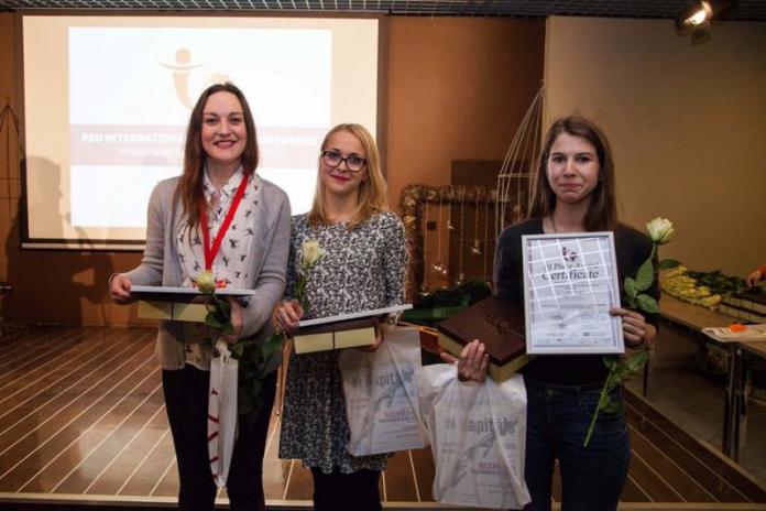 Marina Sokola (pirmā no kreisās) RSU studentu zinātniskās konferences noslēgumā. 2016. gada 16. martā.