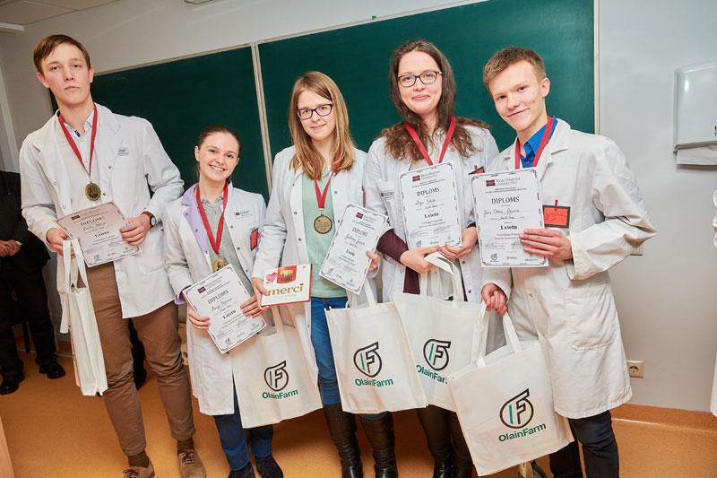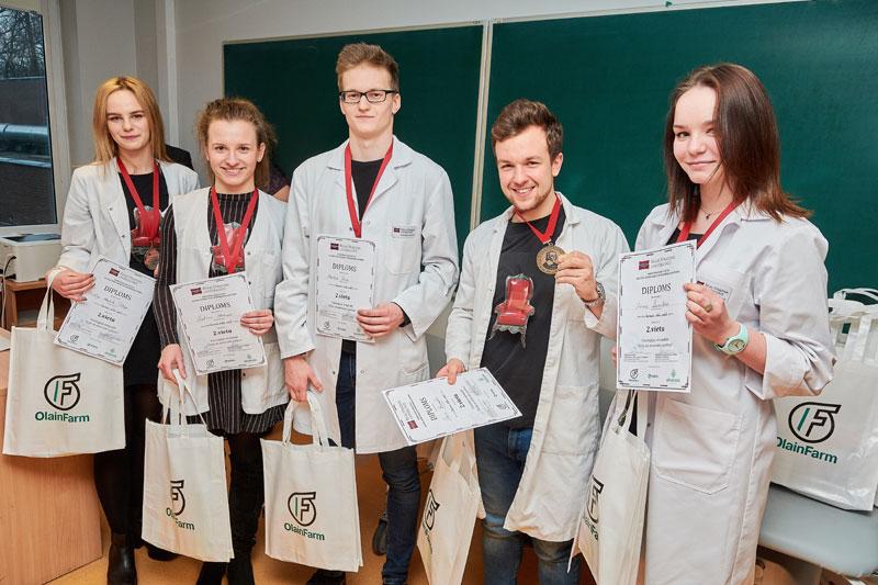 Uzvarētāji un dalībnieki saņēma balvas no pasākuma atbalstītājiem: AS Olainfarm, SIA Silvanol, SIA Krka un katedras kolektīva.