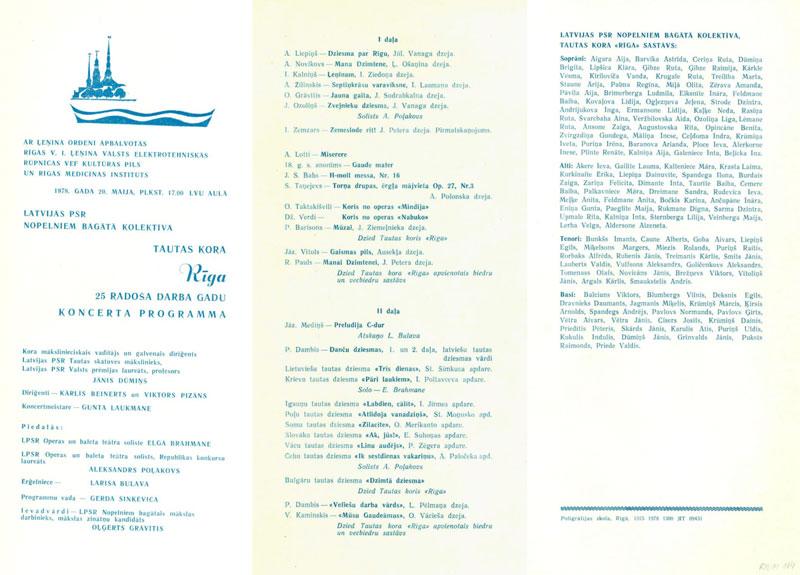 Kora "Rīga" uzstāšanās Vissavienības Tautas saimniecības sasniegumu izstādē Maskavā 1977. gadā. Soliste – LPSR Akadēmiskā operas un baleta teātra māksliniece Ivonna Jākobsone. Helmuta Gangnusa foto. RSUM