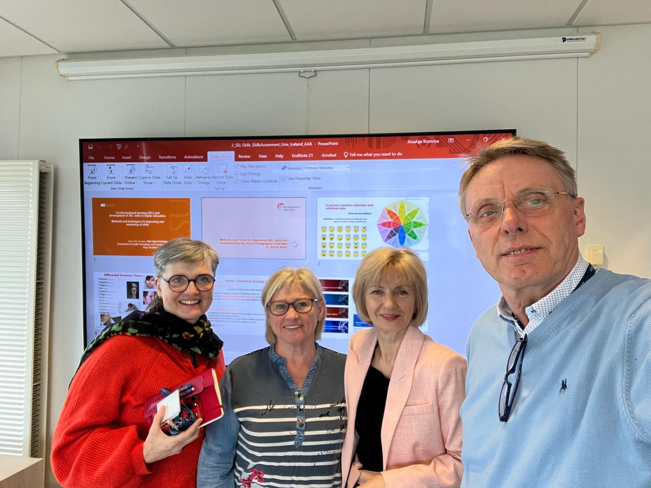 Docente Aira Aija Krūmiņa (otrā no labās) kopā ar Islandes partneriestādes pārstāvjiem