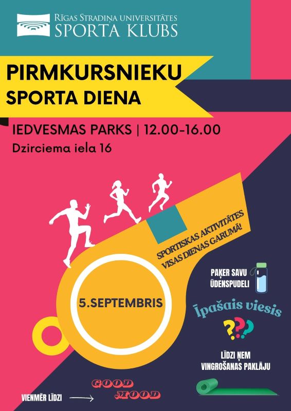 Lai iekustinātu jaunos Rīgas Stradiņa universitātes (RSU) studentus pirmajam studiju gadam, ceturtdien, 5. septembrī, RSU Iedvesmas parkā (Dzirciema ielā 16) no plkst. 12 līdz 16 notiks tradicionālā pirmkursnieku Sporta diena.