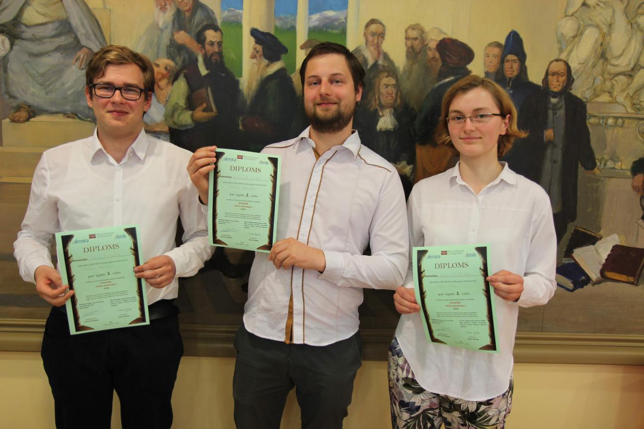 1. vietā – Sciencia Pro Re Nata: Ieva Pikse (4. gada studente), Artūrs Pētersons (5. gada students), Valdis Dakuļs (6. gada students);