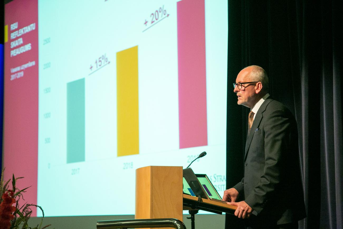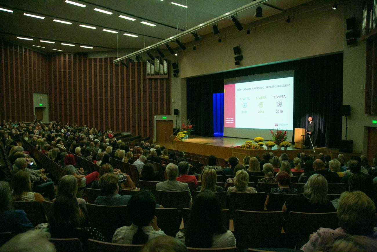 Ceturtdien, 5. septembrī, uz tradicionālo Rīgas Stradiņa universitātes (RSU) Akadēmisko sanāksmi bija pulcējušies gan universitātes darbinieki, gan sadarbības partneri. Savu uzrunu pārpildītajā aulā RSU rektors prof. Aigars Pētersons iesāka ar pateicību visai komandai par izcilo darbu.