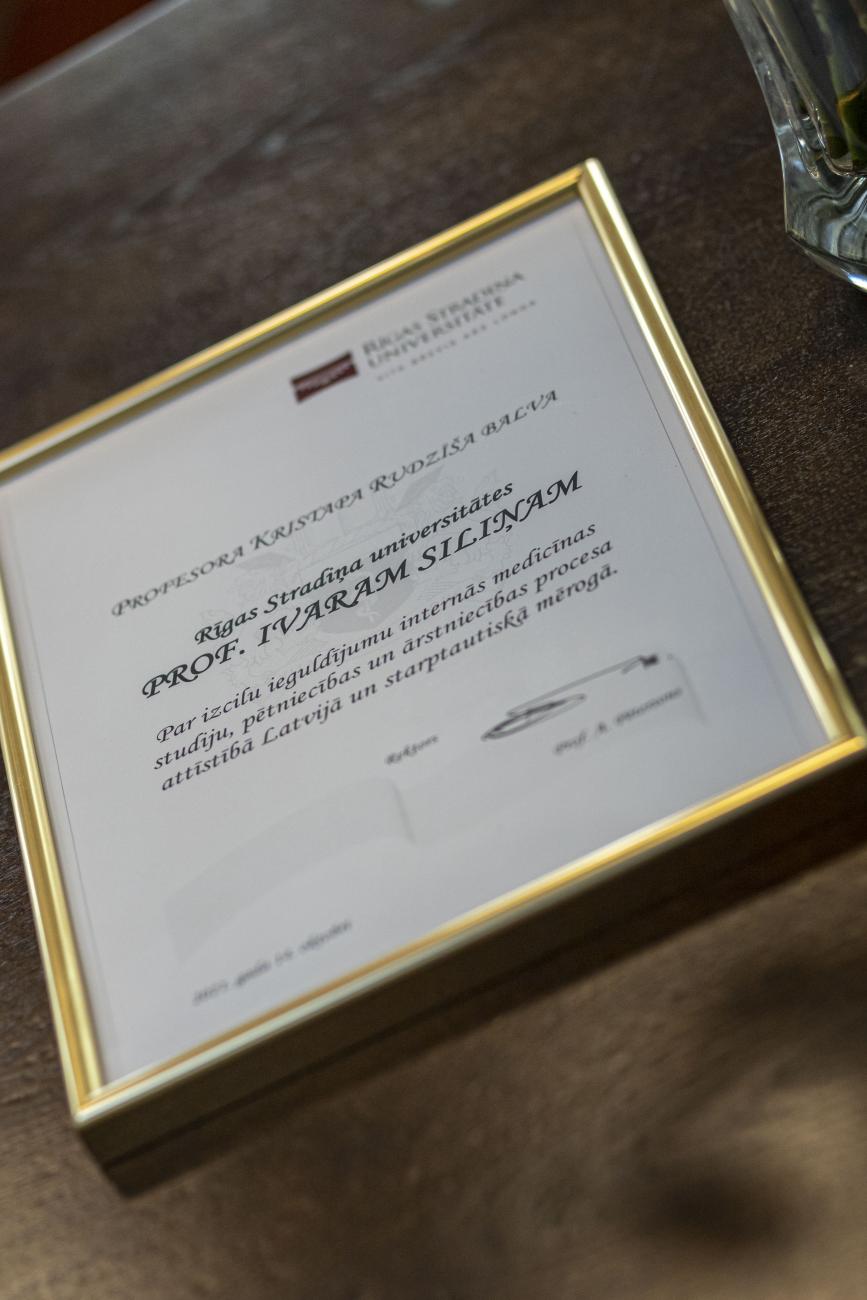 Atzīmējot izcilu un ilggadēju ieguldījumu internās medicīnas attīstībā, šogad ārsta, profesora un pētnieka Kristapa Rudzīša balva piešķirta internistam kardiologam, Rīgas Stradiņa universitātes (RSU) profesoram Ivaram Siliņam. Šo Latvijā augstāko apbalvojumu internās medicīnas specialitātē svinīgā tiešsaistes pasākumā prof. I. Siliņam RSU pasniedza 14. oktobrī.