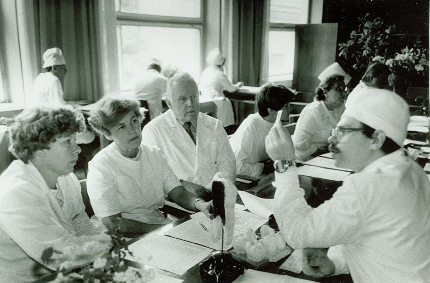 Prof. Gaudiņš vada nodarbību. 1981./82. mācību gads. Foto no RSU Vēstures muzeja krājuma