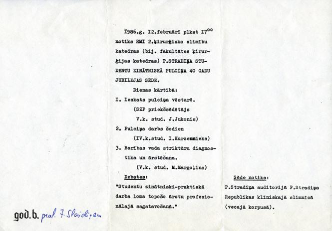 Aicinām piedalīties profesora Jāņa Slaidiņa 100. jubilejai veltītajos piemiņas pasākumos šā gada 24. maijā: