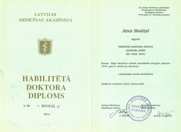 Raksta sagatavošanā izmantota Edvīna Platkāja un Arņa Vīksnas sagatavotā profesora Jāņa Slaidiņa piemiņas grāmata Ārsts, skolotājs, karavīrs // Ārsta virsvalkā, ar karavīra stāju, Klīniskā universitātes slimnīca “Gaiļezers”, R., 2007.g.