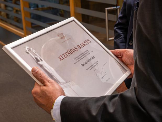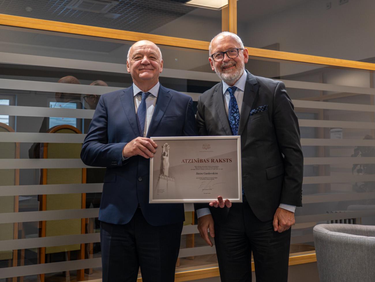Prof. Jānis Gardovskis šajā pašā dienā saņēma Ministru kabineta piešķirto Atzinības rakstu par nozīmīgu ieguldījumu Latvijas ķirurģijas un medicīnas zinātnes attīstībā.