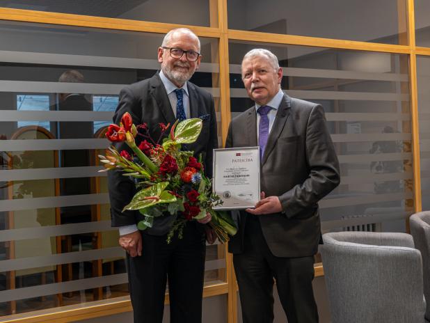 Rektors pateicas prof. Jānim Gardovskim un prof. Andrim Jumtiņam par darbu slimnīcu padomēs