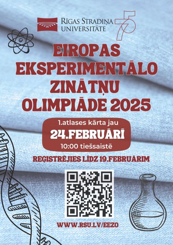 Rīgas Stradiņa universitāte (RSU) aicina Latvijas skolēnus piedalīties Eiropas Eksperimentālo zinātņu olimpiādē (EEZO), kas ir multidisciplināra starptautiska sacensība bioloģijā, ķīmijā un fizikā. Olimpiādes mērķis ir attīstīt jauniešu analītiskās un eksperimentālās prasmes, kā arī veicināt interesi par dabaszinātnēm.