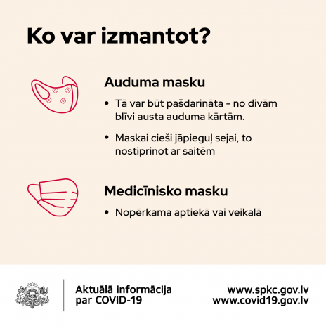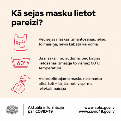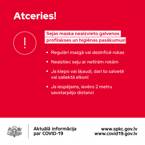 Lai, sākot ar 5. oktobri, nodrošinātu epidemioloģisko drošību Rīgas Stradiņa universitātes (RSU) telpās, RSU aicina darbiniekus un studējošos lietot sejas maskas arī studiju un darba laikā. Īpaši tas attiecas uz telpām, kur starp personām nevar nodrošināt divu metru distanci.