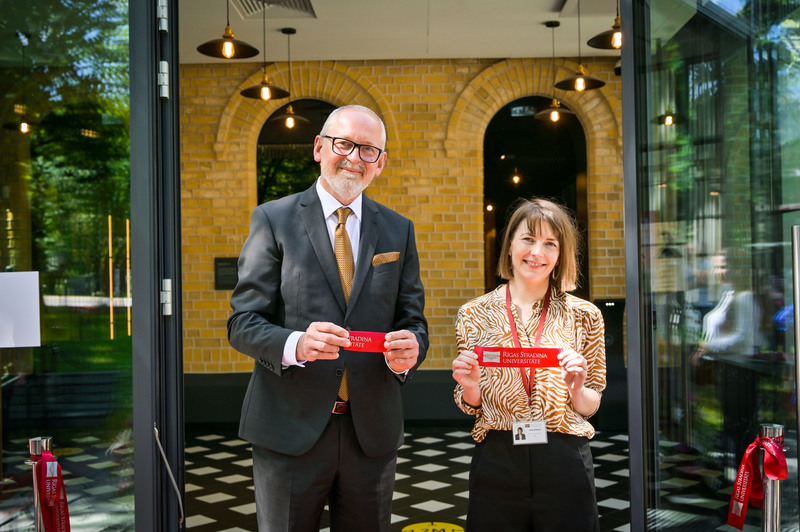 RSU rektors prof. Aigars Pētersons un RSU Anatomijas muzeja vadītāja doc. Ieva Lībiete muzeja svinīgajā atklāšanā 2021. gada 16. jūnijā