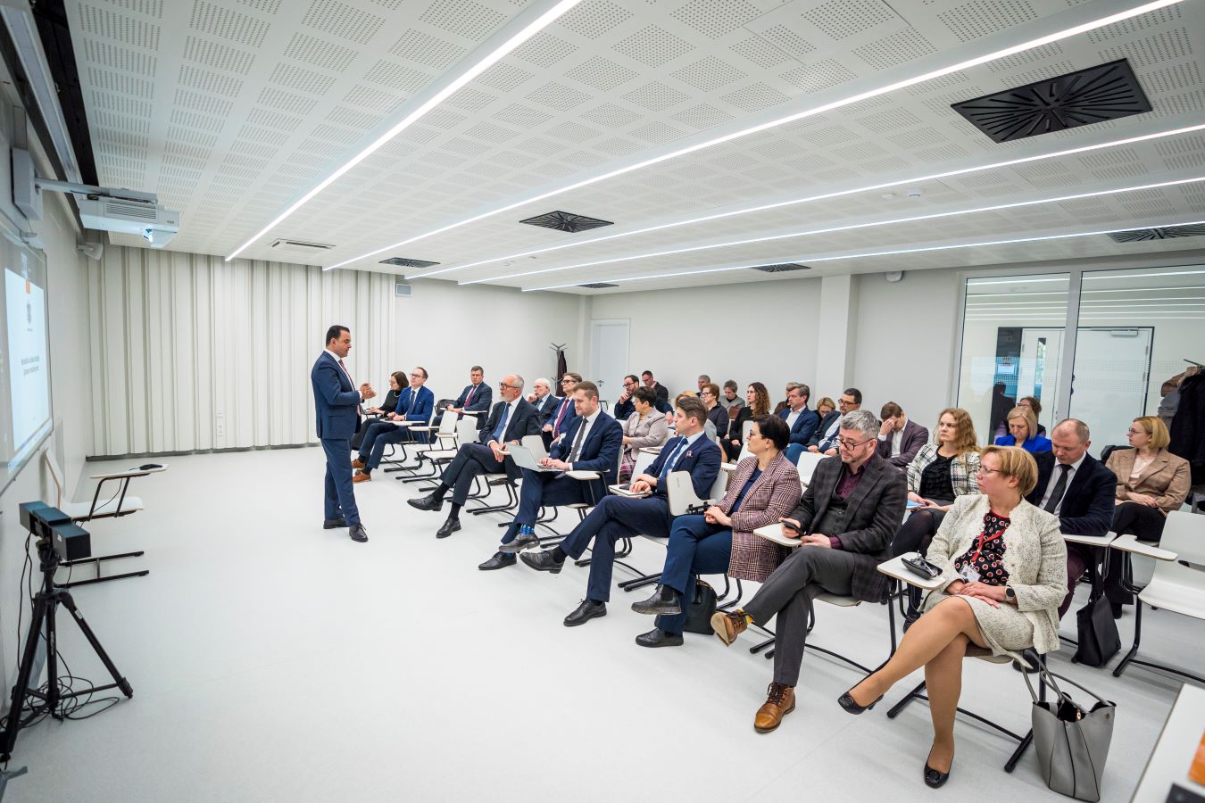 Veselības ministrs Hosams Abu Meri augstu novērtēja RSU Farmācijas studiju un pētniecības centra piedāvātās iespējas studentiem un zinātniekiem, kā arī iepazīstināja ar veselības ministrijas aktualitātēm.
