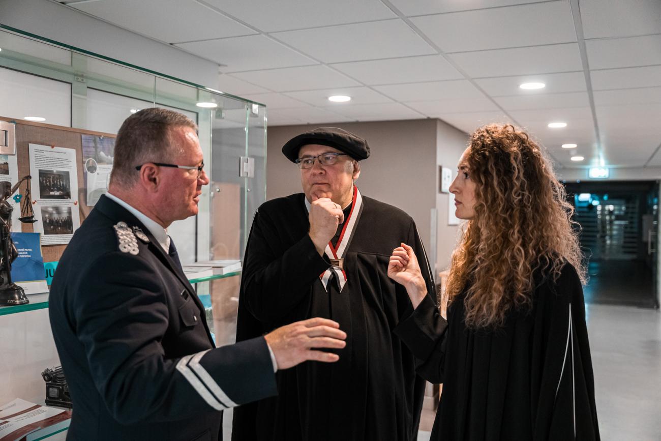 Juridiskās fakultātes dekāns J. Grasis savā uzrunā norādīja, ka jaunā studiju programma ir tapusi gadā, kad Valsts policija atzīmē 105. gadadienu kopš tās izveides 1918. gada 5. decembrī. Viņš novēlēja visiem studentiem sekmīgi pabeigt studijas, lai arī tas nebūs viegli, jo studentiem jāsabalansē dienesta darba pienākumi, intensīvas studijas un privātā dzīve. Šī ir ļoti svarīga studiju programma RSU Juridiskajā fakultātē, kas pilnveidota Iekšējās drošības akadēmijas vajadzībām.