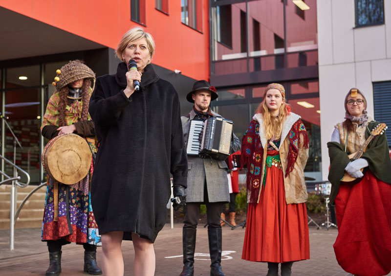 Svinīgajā atklāšanas pasākumā piedalījās RSU rektors profesors Jānis Gardovskis, veselības ministre Anda Čakša, RSU Studējošo pašpārvaldes vadītāja Natālija Šilova un būvkompānijas Velve valdes priekšsēdētājs Ainārs Leitēns.