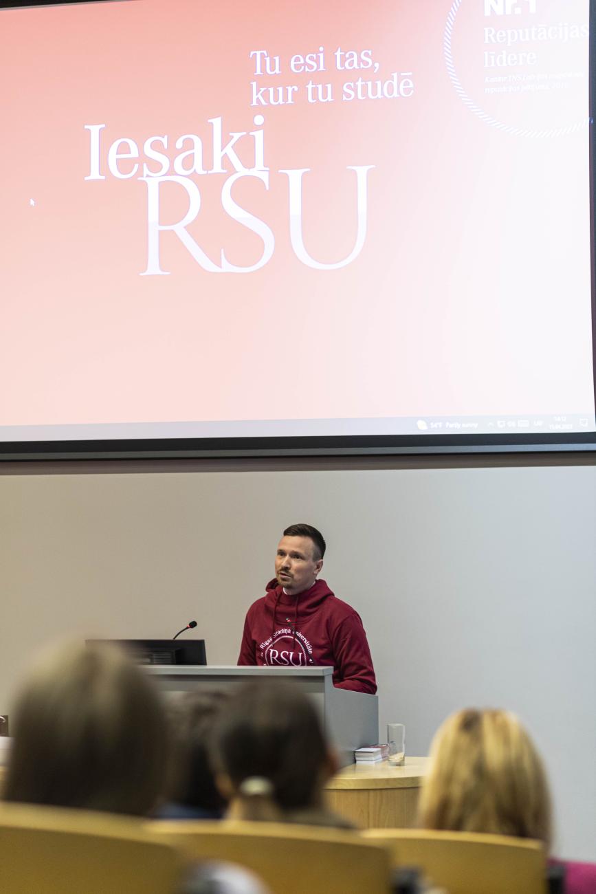 Topošie studenti varēja redzēt RSU Komunikācijas fakultātes studentu medija Skaļāk multimediju studiju darbībā un iesaistīties tās tiešraides aktivitātēs. Eiropas studiju fakultāte organizēja sarunas ar studentiem un mācībspēkiem, savukārt Juridiskās fakultātes pārstāvji kopīgi ar viesiem izspēlēja kāzusu medicīnas tiesību jomā, iepazīstināja ar fakultātes digitālajām studiju metodēm un pārbaudīja jauniešu zināšanas par likumu ievērošanu.