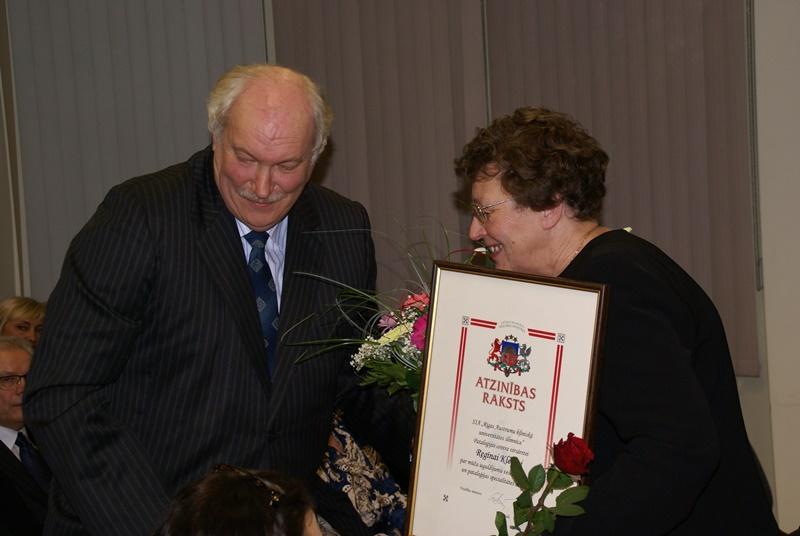 - RSU Medicīnas fakultātes Patoloģijas katedras profesorei un Rīgas Austrumu klīniskās universitātes slimnīcas Patoloģijas centra virsārstei Regīnai Kleinai (par mūža ieguldījumu veselības aprūpē un patoloģijas specialitātes attīstībā)