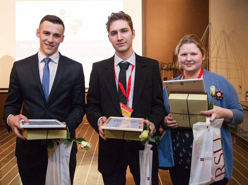 Austris Keišs (pirmais no kreisās) 2016. gada RSU studentu zinātniskajā konferencē.