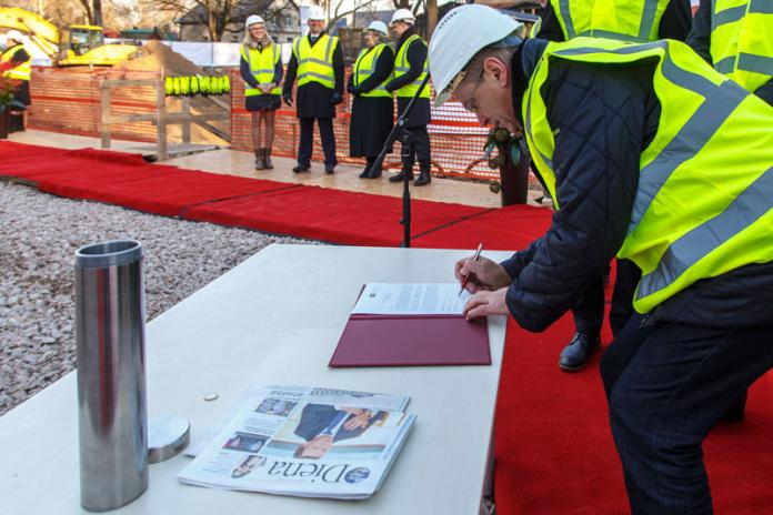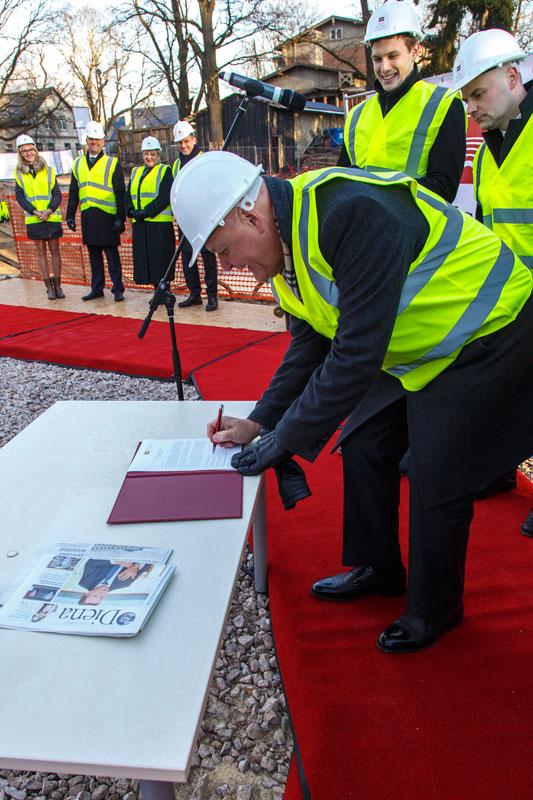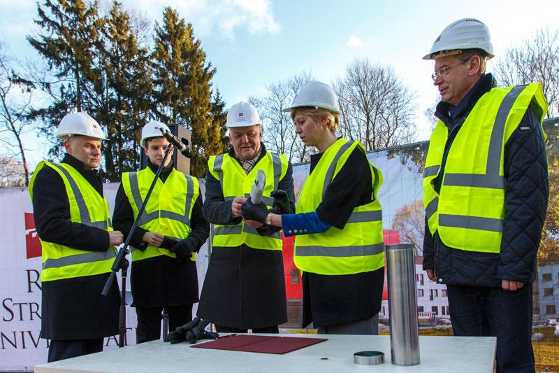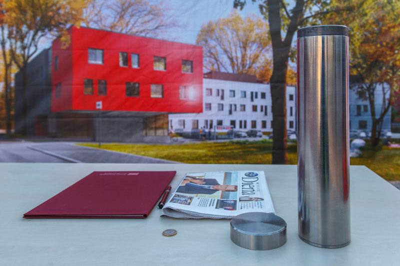 RSU jaunās dienesta viesnīcas pamatos iemūrē vēstījumu nākamajām paaudzēm