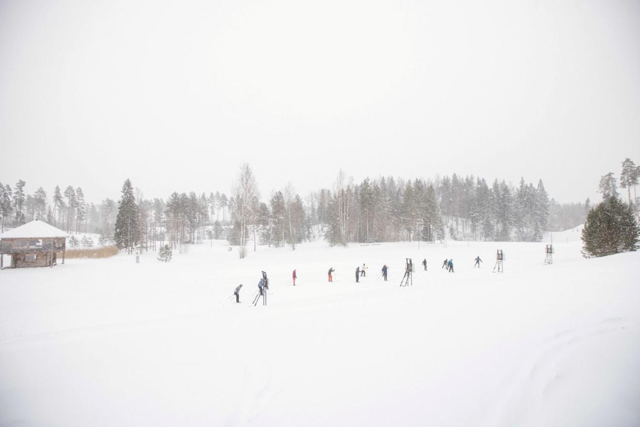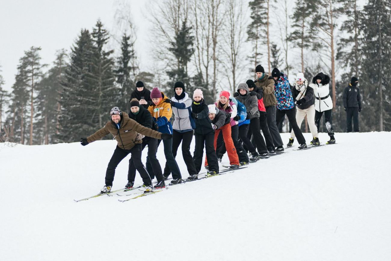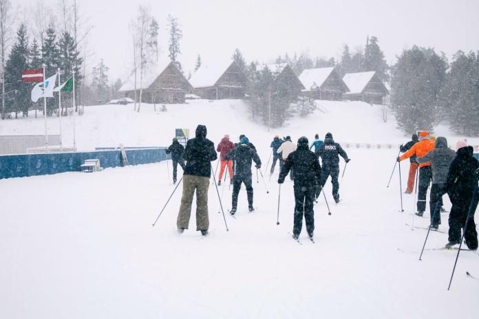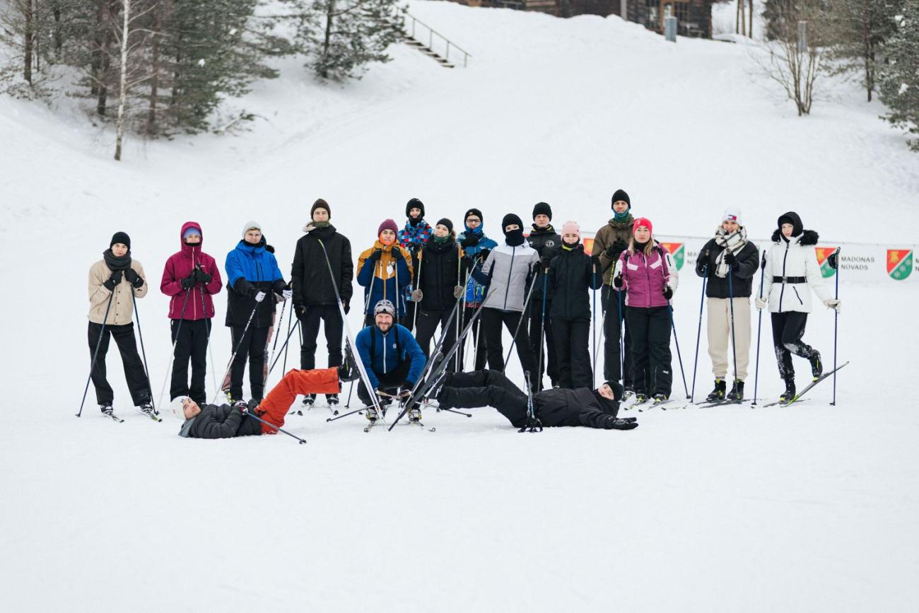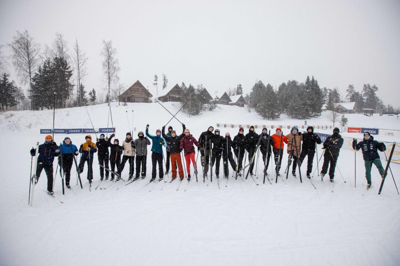 RSU LSPA studenti distanču slēpošanas metodiku apgūst ziemas nometnē