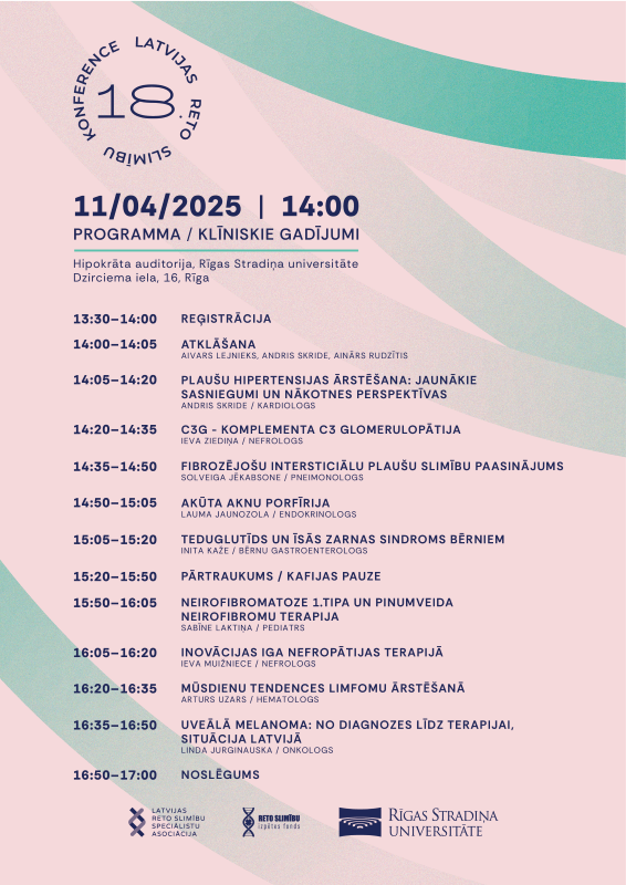 Papildu informācija par konferenci atrodama Latvijas Reto slimību speciālistu asociācijas tīmekļa vietnē.