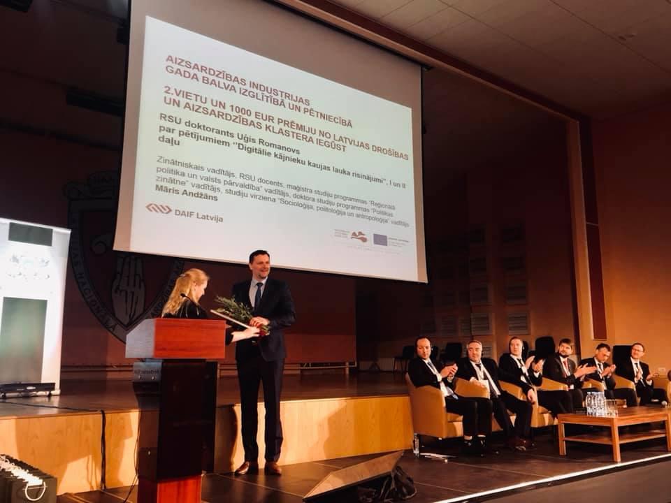 - 2. vietu ieguva RSU doktorants Uģis Romanovs par pētījuma Digitālie kājnieku kaujas lauka risinājumi 1. un 2. daļu (promocijas darba vadītājs: RSU Eiropas studiju fakultātes docents Māris Andžāns).
