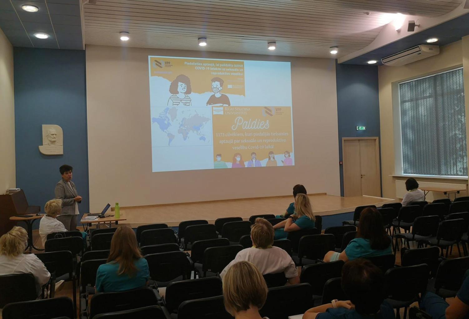 Prof. Gunta Lazdāne detalizēti pastāstīja par apakšprojekta Izmaiņu nepieciešamības identificēšana reproduktīvās veselības aprūpes pakalpojumu nepārtrauktības nodrošināšanai un iedzīvotāju riska uzvedības mazināšanai COVID-19 laikā un pēc tās mērķiem un metodēm un aicināja RDN atbalstīt projekta realizāciju.