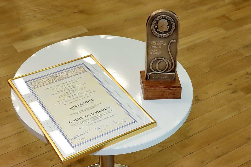 Ceturtdien, 15. oktobrī, Rīgas Stradiņa universitātē (RSU) Ortopēdijas katedras vadītājam prof. Andrim Jumtiņam tika pasniegta Paula Stradiņa balva par izcilu ieguldījumu ortopēdijas attīstībā Latvijā. Tas ir mūsu valsts augstākais apbalvojums ķirurģijas specialitātē.