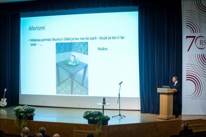 Laudatio teica RSU Ortopēdijas katedras docents Silvestris Zēbolds, pēc tam prof. Andris Jumtiņš uzstājās ar akadēmisko runu Ortopēdijas māksla.