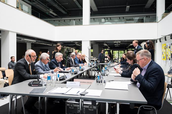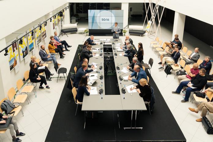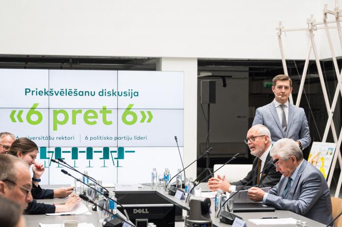 RSU rektors profesors Aigars Pētersons piedalās diskusijā ar vadošo politisko partiju pārstāvjiem