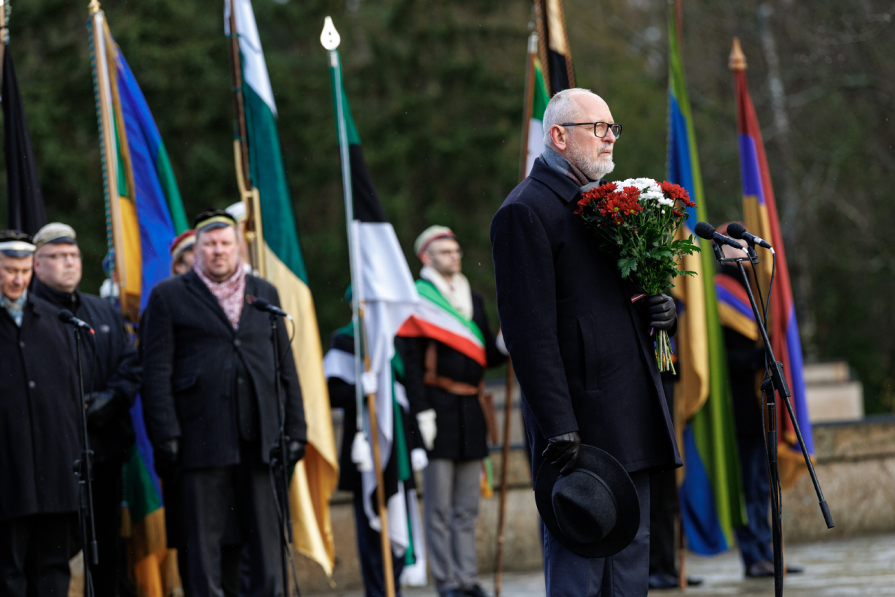 Brāļu kapos notika svinīgs pasākums, kurā runu teica arī RSU rektors profesors Aigars Pētersons.