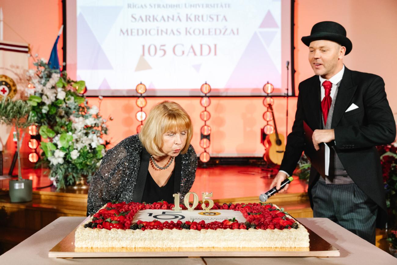 Pasākuma noslēgumā zālē tika ienesta svētku kūka. Koledžas direktore Ināra Upmale simboliski dalījās ar savām “manifestācijām” – mērķiem un iecerēm, ko koledža grib sasniegt nākamajos gados.