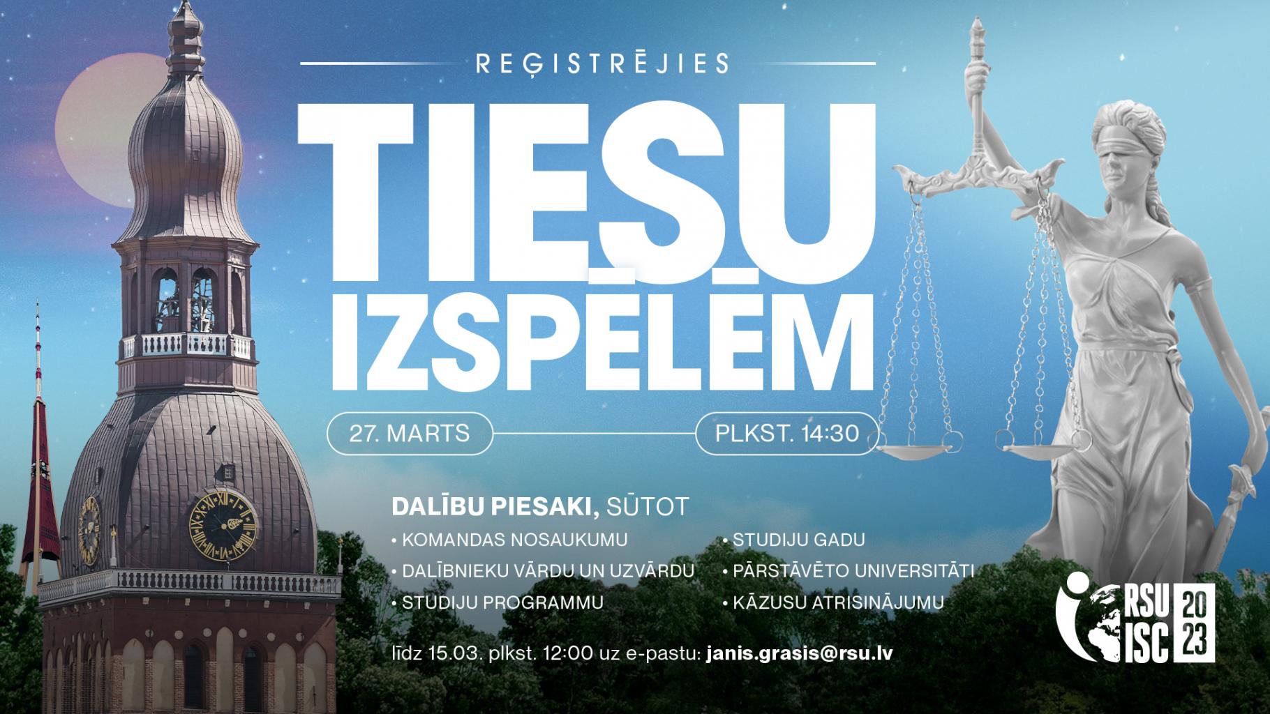 27. martā Rīgas Stradiņa universitātē (RSU) norisināsies tiesu izspēles, kurās studenti varēs inscenēt reālu tiesas procesu un sagatavot procesuālos dokumentus. Tajās var piedalīties tiesību zinātņu studenti no visām Latvijas augstskolām.