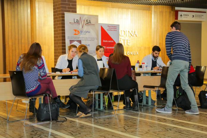 Ceturtdien, 29. novembrī, ar lielu Rīgas Stradiņa universitātes (RSU) darbinieku un studentu atsaucību jau sesto reizi notika Veselības diena, kuras laikā varēja ziedot asinis un veikt vienkāršas veselības pārbaudes pie topošajiem mediķiem – studentu zinātnisko pulciņu dalībniekiem.