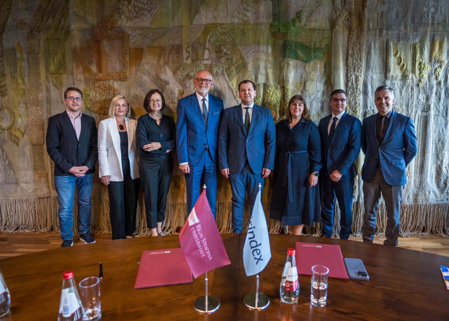 RSU un Grindeks vadības pārstāvji pēc līguma parakstīšanas