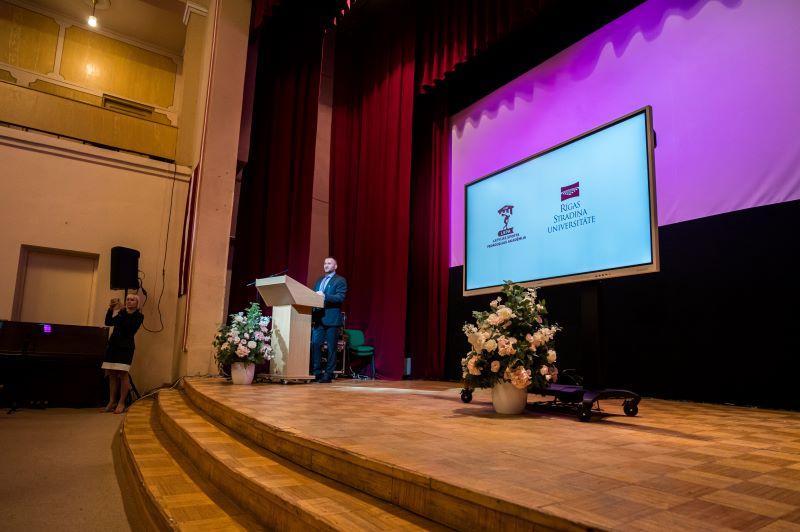 RSU rektors prof. Aigars Pētersons iezīmēja galvenos RSU un LSPA kopīgās nākotnes virzienus – digitalizāciju, pētniecības attīstību, starptautiskuma un izglītības kvalitātes celšanu.
