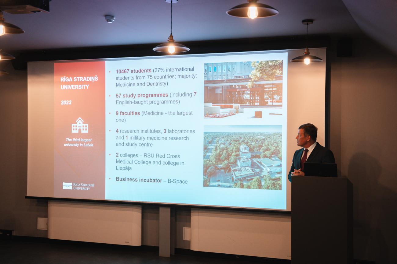 RSU rektors Aigars Pētersons, uzrunājot viesus, norādīja: “Mūsu kolēģi savā stažēšanās laikā Bufalo Universitātē uzlaboja savas digitālās prasmes maģistra līmenī un apguva jaunākās metodes kursu satura sagatavošanā un pasniegšanā, kā arī prasmes studentu projektu vadīšanā un uzraudzībā. Tāpat viņi guva nenovērtējamu pieredzi pētniecībā un starpdisciplinārā akadēmiskajā darbā.