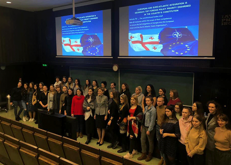 Vizītes laikā viņa tikās ar studiju programmas Tiesību zinātne un Starptautiskās attiecības – Eiropas studijas studentiem un akadēmisko personālu un pārrunāja jautājumus, kas saistīti ar Gruzijas ārpolitikas prioritātēm, drošības jautājumiem, sadarbību ar starptautiskajām organizācijām u. c.