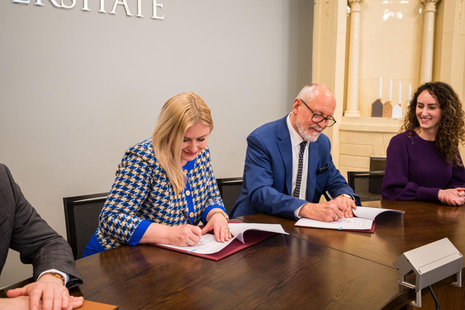 Līgumu Satversmes tiesas vārdā parakstīja tās priekšsēdētāja Irēna Kucina, bet RSU pārstāvēja rektors Aigars Pētersons