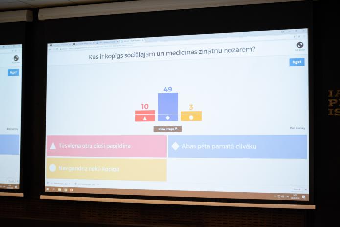 Medicīnas fakultātes prodekāns Ingus Skadiņš iepazīstināja ar medicīnas studiju iespējām un turpmākajām vieslekcijām, kas RSU notiks reizi mēnesī. Šogad skolēni, kas izvēlējušies medicīnas jomu, apgūs šūnas uzbūvi, ārstnieciskos augus, higiēnu un dezinfekciju, bet nākamgad būs citas ar veselības aprūpi saistītas tēmas.