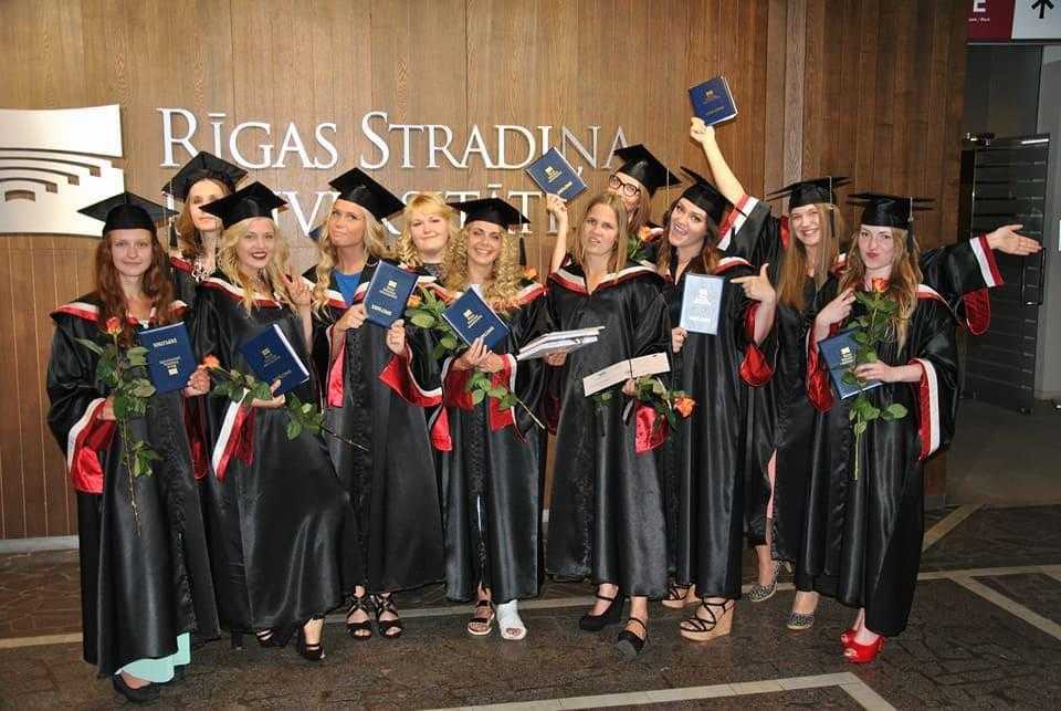 2017. gadā Monta Bērze (otrā no labās) kopā ar kursabiedrenēm pēc RSU bakalaura diploma saņemšanas. Foto no privātā arhīva