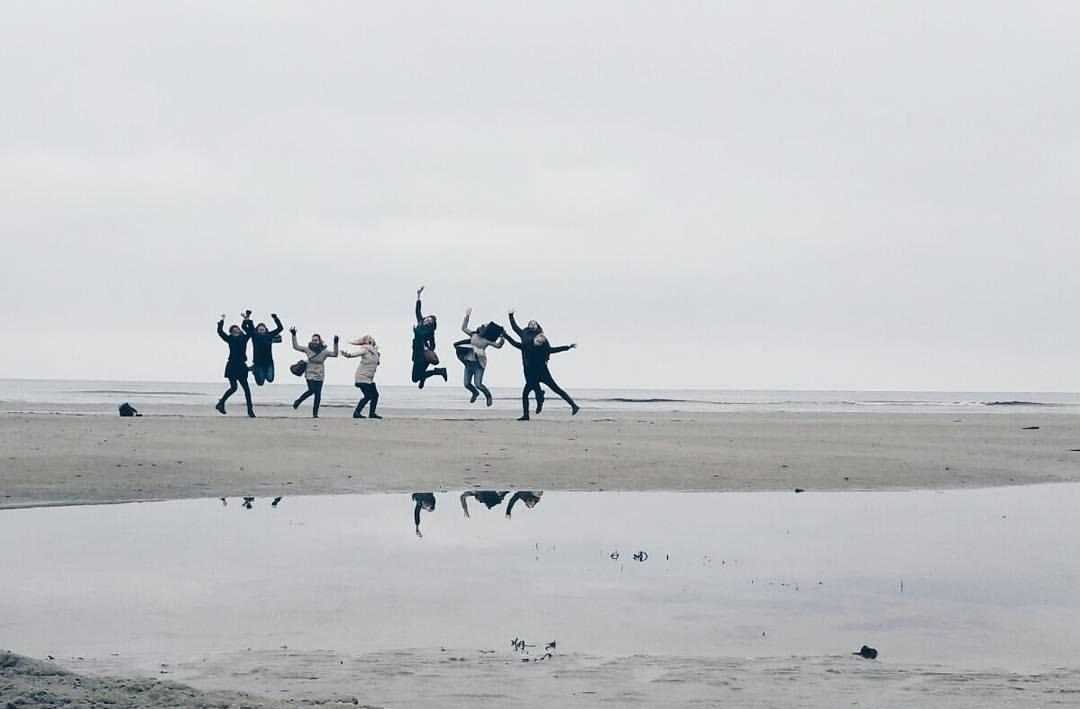 2016. gads. "Ar kursabiedrenēm pēc lekcijām devāmies uz jūru," studiju laiku atceras Monta. Foto no privātā arhīva