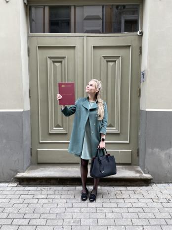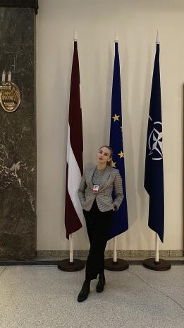 Frančeska Tīna Kursīte šovasar absolvēja Rīgas Stradiņa universitātes (RSU) bakalaura studiju programmu Starptautiskās attiecības – Eiropas studijas un nu jau vairāk nekā trīs mēnešus strādā Ārlietu ministra birojā. Paralēli darbam Frančeska RSU maģistrantūrā studē starptautiskās attiecības un diplomātiju.
