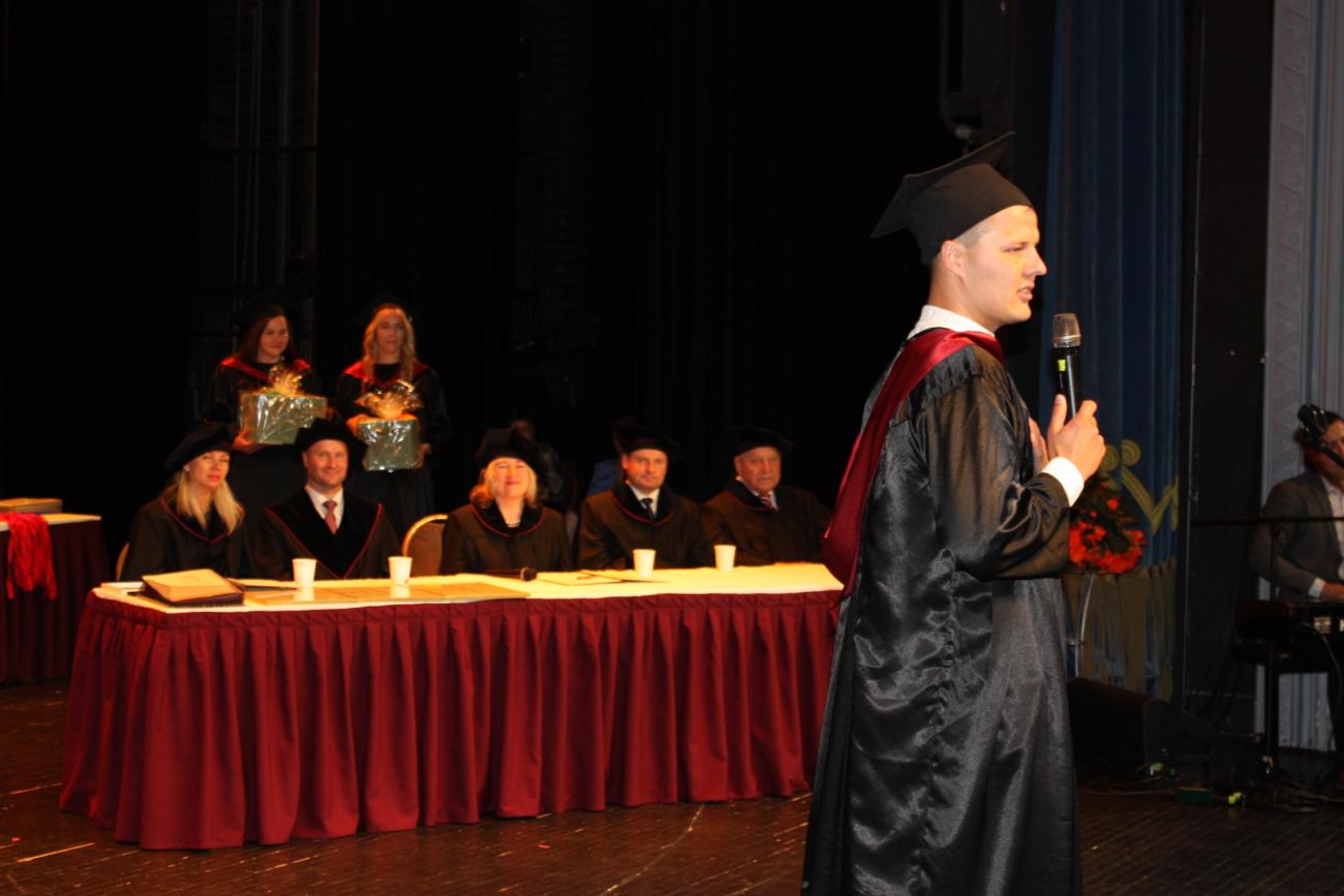 Izlaidumu ar svētku uzrunu absolventiem un viņu sveicējiem atklāja LSPA rektors, asociētais profesors Kalvis Ciekurs. Izlaidumu vadīja LSPA prorektore, profesore Andra Fernāte.