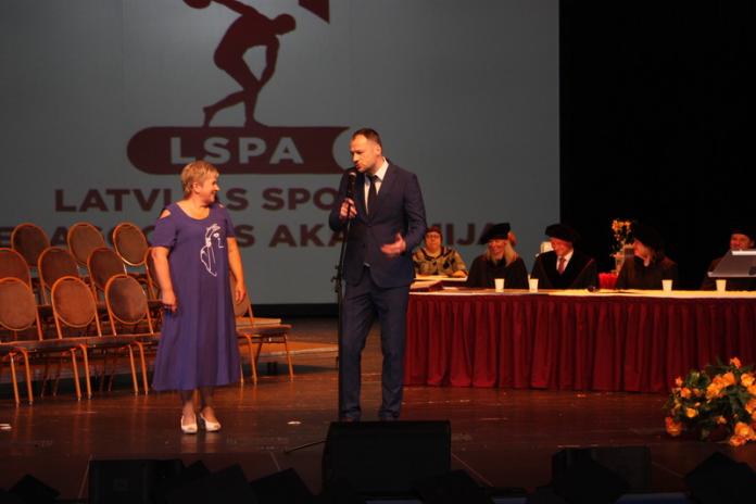 Docētāju vārdā absolventus sveica Sporta spēļu katedras vadītājs Renārs Līcis un asociētā profesore Antra Gulbe, bet muzikālos pārsteigumus sarūpēja Gerda Līce, Ieva Janiševa un Didzis Soste.