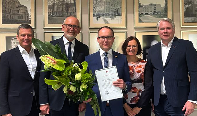 Trešdien, 11. maijā, Rīgas Stradiņa universitātes vadība sveica 40. dzimšanas dienā Iekšķīgo slimību katedras asociēto profesoru, vadošo pētnieku Andri Skridi (attēla centrā).
