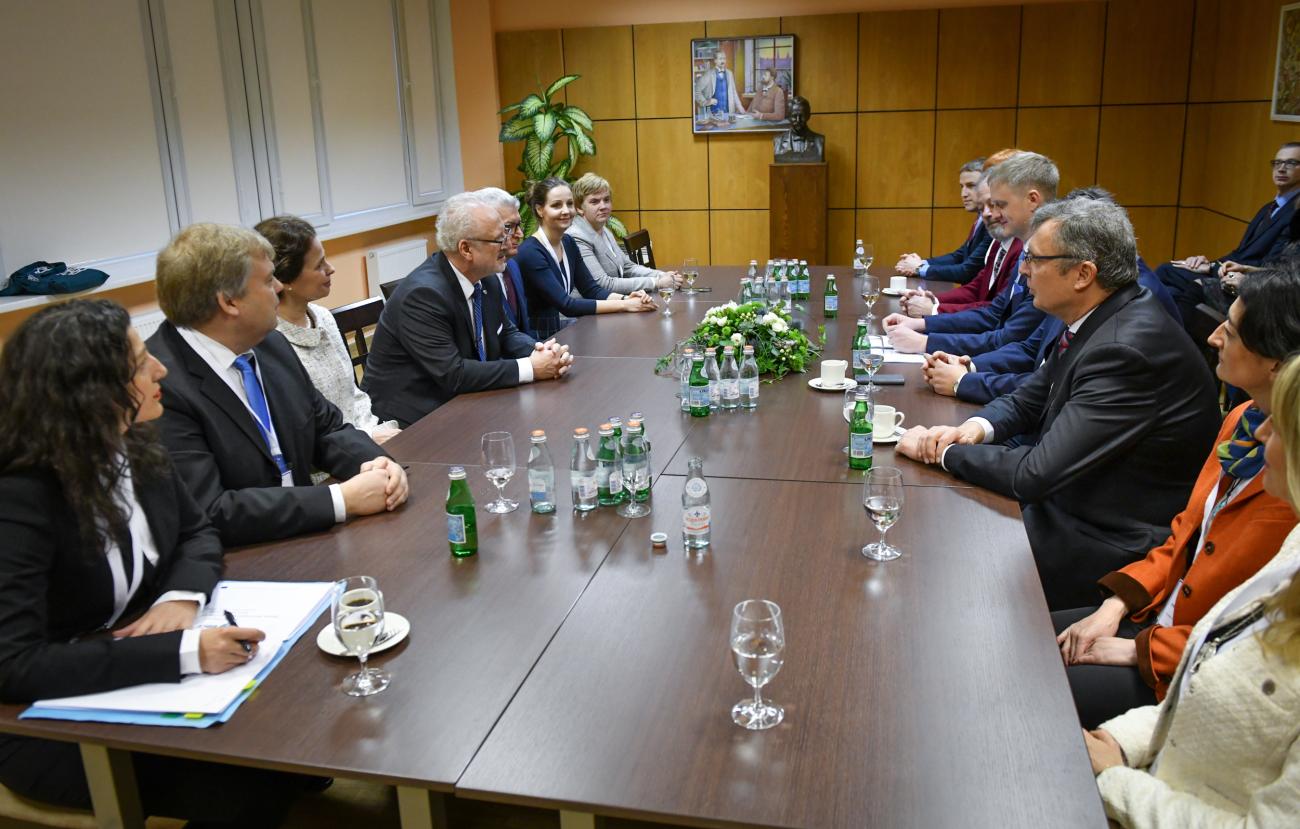Viņš norāda, ka, pateicoties zinātnieku pūliņiem, šā projekta laikā ir izdevies piesaistīt Latvijas tautsaimniecībai jau 13 miljonus eiro, un šis projekts ir viens no daudziem, kuri izstrādāti un realizēti ar Latvijas valdības un Eiropas Savienības (ES) atbalstu. Nākamos septiņus gadus jaunatklātais centrs kalpos par zinātnisko bāzi, kurā apvienojas starptautisku atzinību guvušu Latvijas, Vācijas un Šveices zinātnisko grupu speciālistu zināšanas un materiāltehniskie līdzekļi, viņš turpina, uzsverot, ka tas kļūs par pamatu augstākā līmeņa izstrādēm kaulaudu atjaunošanai un jaunu biomedicīnisko metožu izmantošanai nepieciešamo biomateriālu jomā. "Baltijas Biomateriālu ekselences centra atklāšana pastiprinās Latvijas attīstības potenciālu un paplašinās mūsu valsts sociālekonomisko nozīmību. Izstrādātie plāni un aprēķini liecina, ka centra devums Latvijas ekonomikai nākamo 20 gadu laikā varētu pārsniegt 74 miljonus eiro," atklāšanas runā pauda Valsts prezidents.
