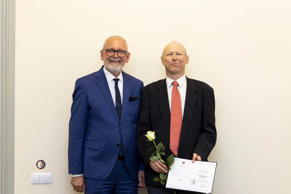 Asoc. prof. Egils Stalidzāns (no labās) kopā ar RSU rektoru prof. Aigaru Pētersonu