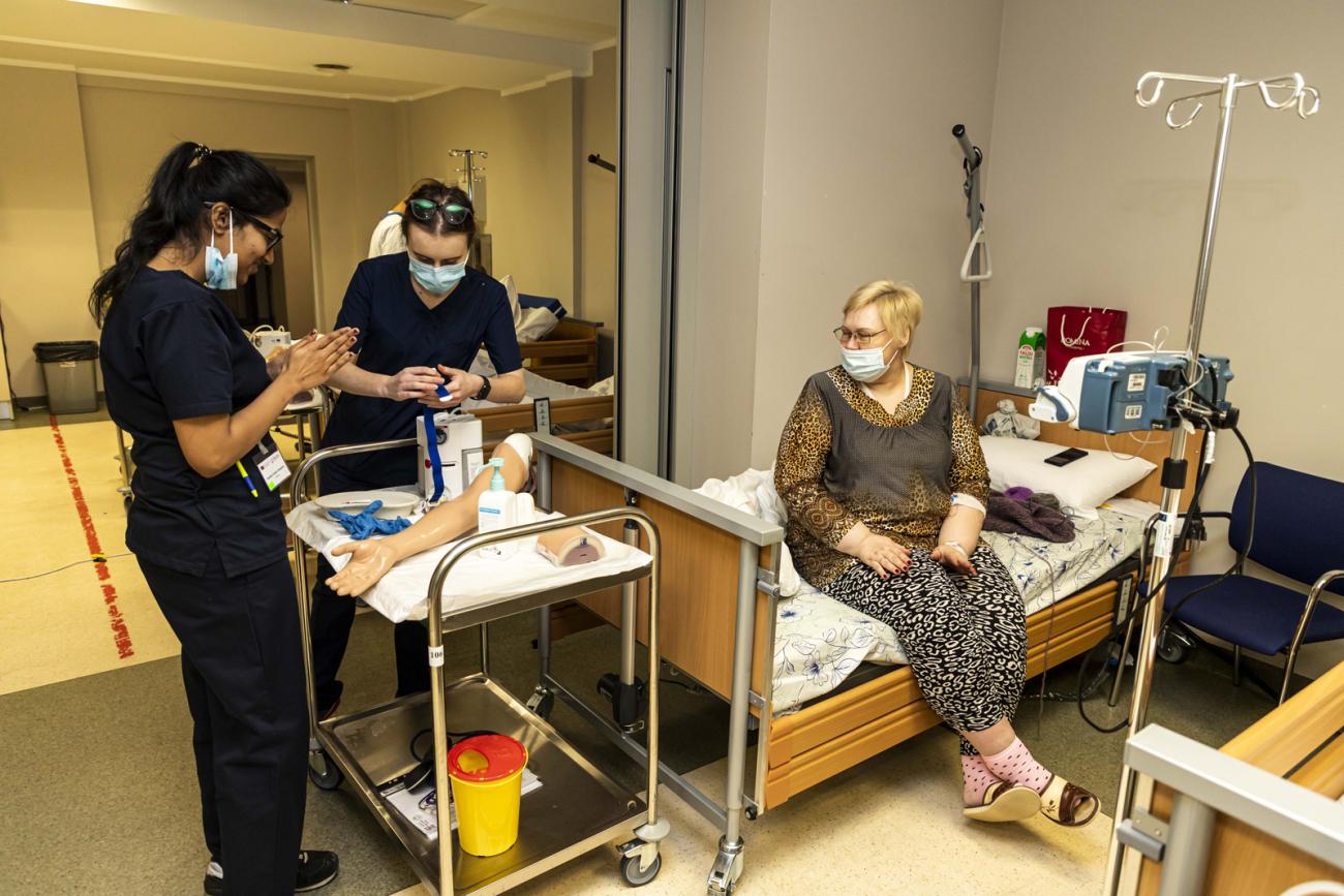 Pirms strādāt ar reāliem pacientiem slimnīcā, Rīgas Stradiņa universitātes (RSU) topošie mediķi savā trešajā studiju gadā iziet māsu praksi īpaši iekārtotā, ar mulāžām, manekeniem, simulatoriem un arī pacientiem – aktieriem – pildītā slimnīcā. Šis divu nedēļu projekts, kur vispirms tiek strādāts improvizētā iekšķīgo slimību nodaļā un pēc tam – ķirurģiskajā nodaļā, noslēgsies piektdien, 13. janvārī, un Medicīnas izglītības tehnoloģiju centrā (MITC) tas tiek īstenots jau trešo reizi. Idejas pirmsākumi MITC kolēģiem radušies, redzot pandēmijas radītos ierobežojumus ārvalstu studentiem gūt praksi savās mītnes zemēs, tomēr projekts pierādījis savu nozīmīgumu un šobrīd turpina būt mācību procesa sastāvdaļa.
