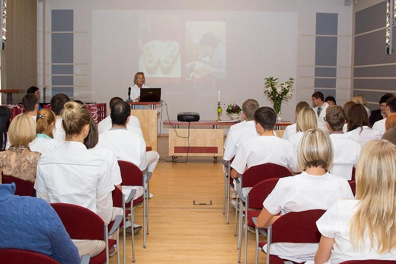 Klātesošos uzrunāja Zobārstniecības fakultātes dekāne I. Urtāne un Ārvalstu studentu nodaļas dekāne S. Žermanos.